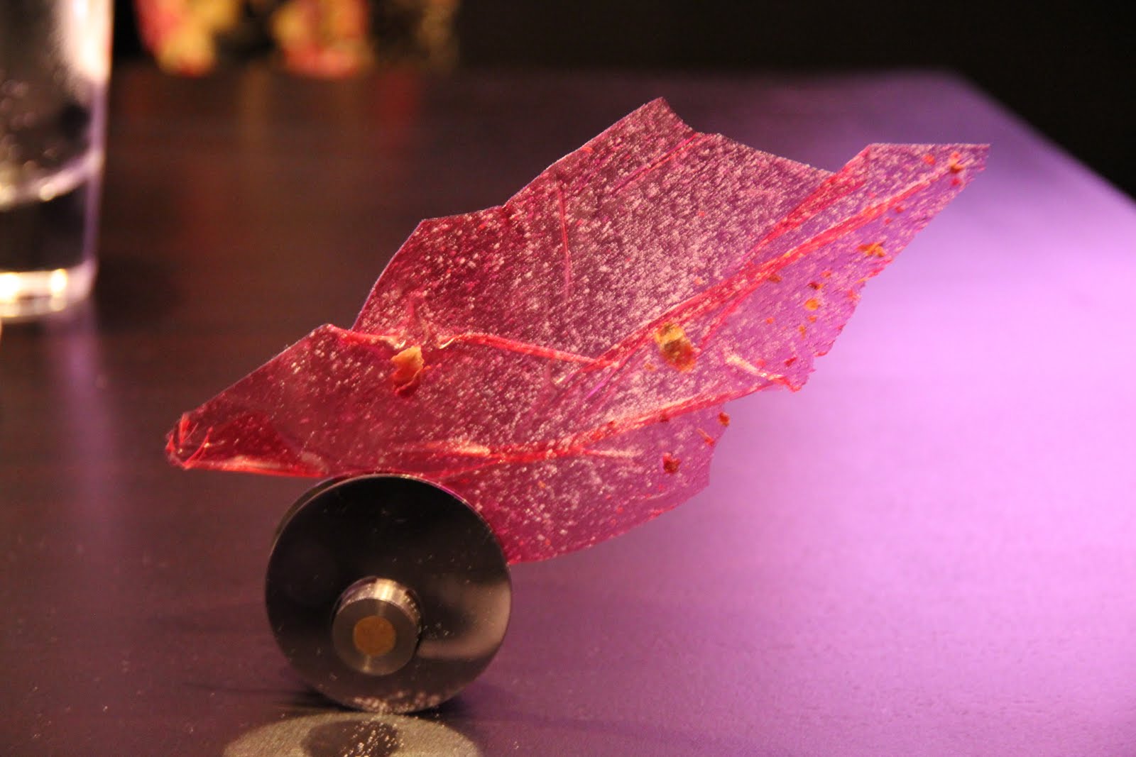 Eucalyptos plantorna kom in flera rätter innan och stod och droppade sen drack man upp det efter ett tag, riktigt fint. Sen fick vi den här pinnen till om jag inte minns fel.