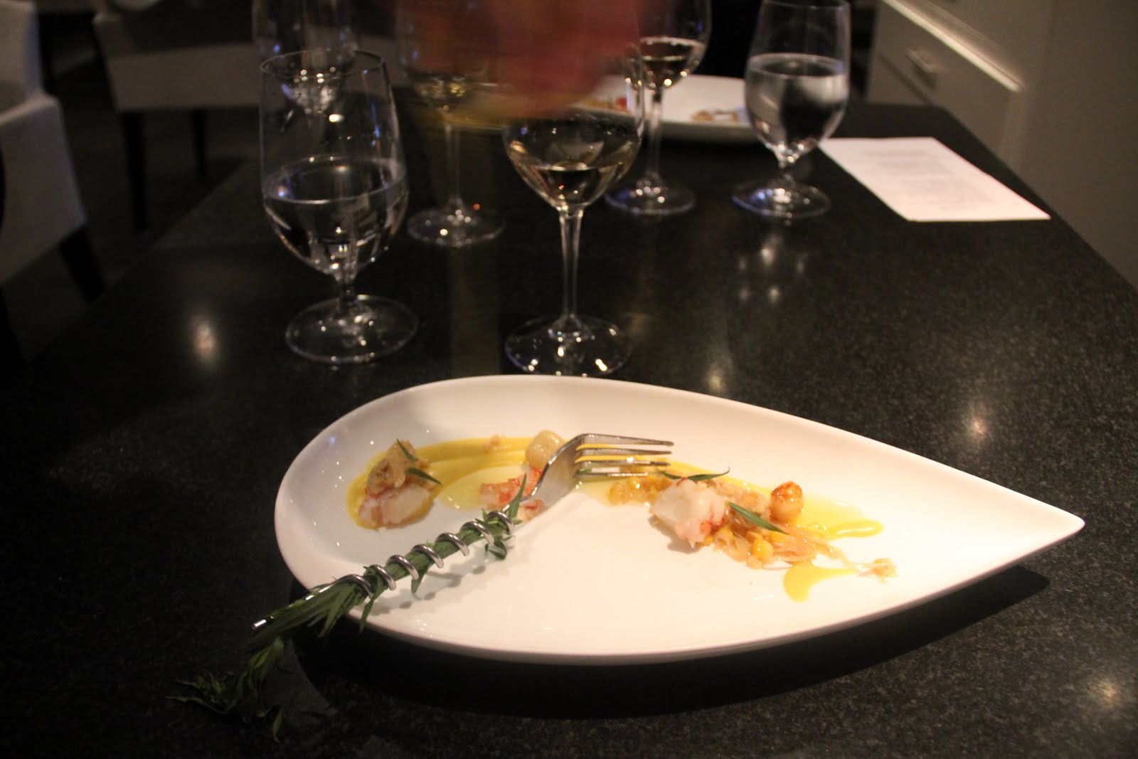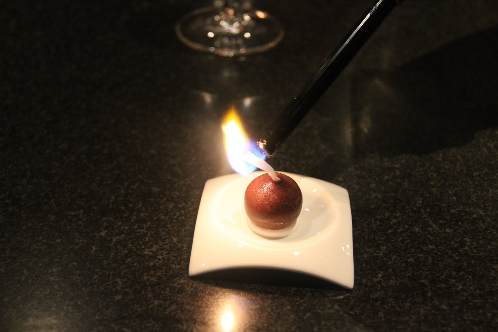 Clam bake. Ljuset som stått på bordet i tre rätter blev nu sås till denna rätt, verkligen kul fst vi båda anade att något skulle hända med det.