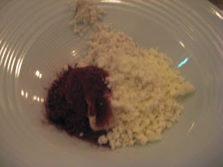 Den här desserten gillade jag en smulpaj i modern tappning svartvinbärspulver crumble som är kört i pacojet sen var det en glass under också. Enkelt få moment men jävligt bra.